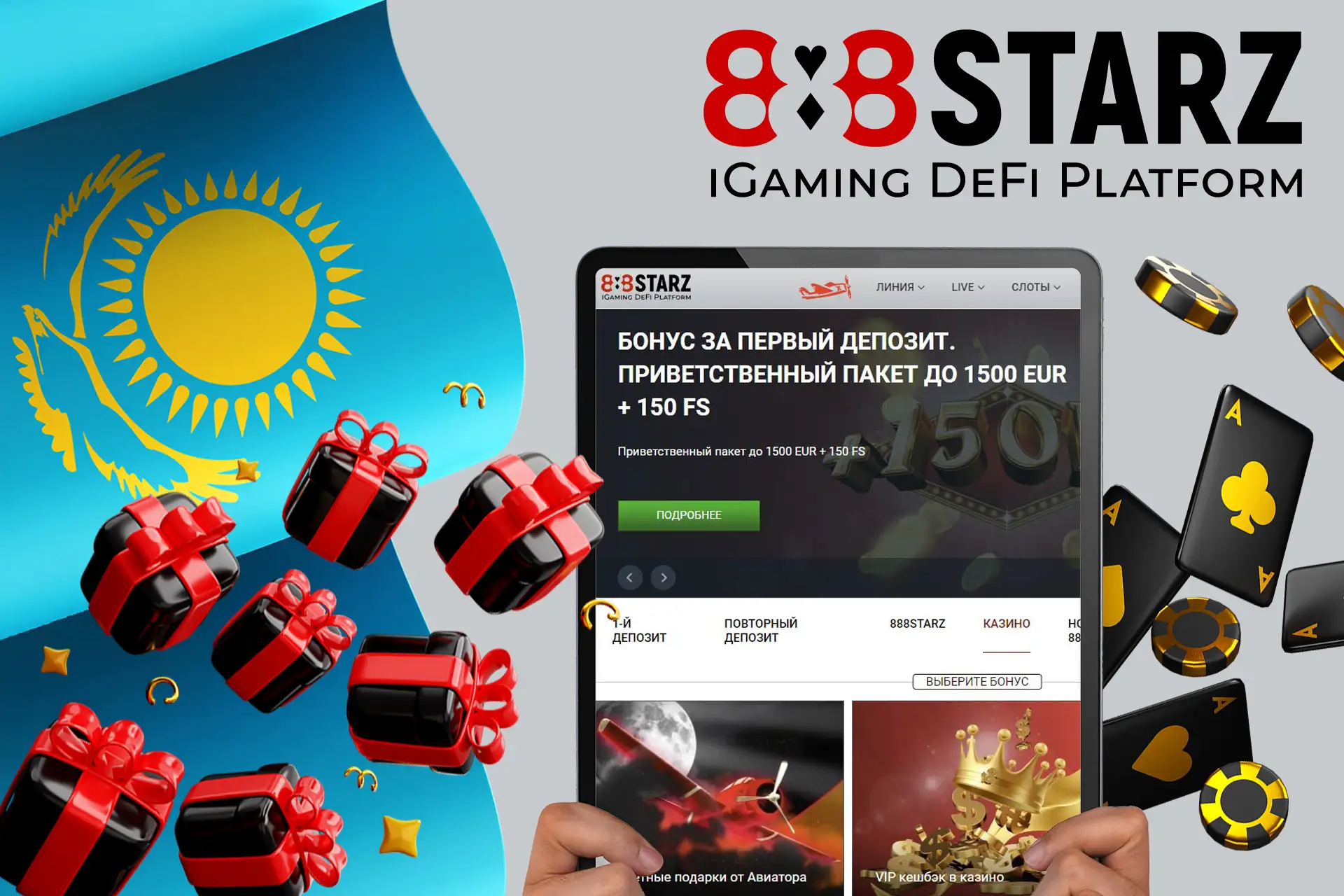 | 888STARZ | До 30 000 KZT | Регистрация и первый депозит |